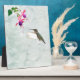 Los colibríes gavilleros de ruby se reúnen a lo largo de la costa del Golfo durante los meses de agosto y septiembre, preparándose para su migración anual a su casa de invierno en México. Mientras preparan flores llenas de néctar de plantas como la fusquia y la vid de trompeta para alimentarlas en su viaje. Este diseño presenta una garganta hembra que se acerca a una tentadora flor de fuschia rosa y púrpura.