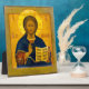 Icono ruso antiguo del Pantocrador de Jesucristo (gobernante del Universo) al estilo bizntino / griego. Un clásico tema ortodoxo oriental. La traducción más común de Pantocrator es "todopoderoso" o "todopoderoso". Pintado en un panel de madera con hojas de oro. Su mano en beneficio, sosteniendo el Evangelio (en cirílico). Su nombre está escrito a cada lado del halo, como IC y XC En revistas, camisetas, llaveros, encantos, almohadas, etc. Por alguna razón, el cuaderno/diario es muy popular.
