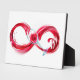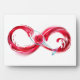 Símbolo infinito de flujo continuo de vino tinto vertiendo en vidrio de vidrio sobre fondo blanco.