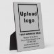 Placa de mesa con caballete que puede personalizar poner su nombre comercial. Personalizar y úselo como material de marketing para promocionar su negocio o promocionar su marca a sus clientes o clientes. Los diseños son textos negros sobre fondo gris y sobre forma rectangular de retrato. Para personalizar de esta placa, suba el logotipo de su empresa, escribe el nombre de su empresa o empresa, la dirección, el número de teléfono, el correo electrónico y el sitio web o página de medios sociales. Compruebe la apariencia después de cargar el logotipo y escribir textos. Si la apariencia le resulta agradable, puede realizar su pedido ahora. Si necesita cambiar el tamaño y mover el logotipo y los textos para que encajen en esta placa o en otros tamaños que elija, por favor cambie la herramienta de diseño. También puede realizar otros cambios según sus preferencias en la herramienta de diseño, como cambiar el color de fondo, el color de la fuente y el estilo de fuente. Plaque que se puede mostrar en la recepción para crear conciencia de marca.