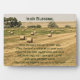 Placa decorativa de 7 x 5 pulgadas con bisagra que muestra la foto de un campo de granja lleno de balas de heno junto con una tradicional bendición irlandesa impresa en escritura verde y estilizada.