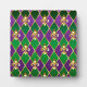 jewelry, background on Mardi Gras of purple and green rhombus, decorated gold lilies.