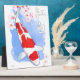 Koi rojo y blanco, conocido como kohaku en japonés. Con flores de cerezo y las letras japonesas para "kohaku".
