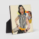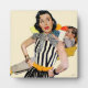 Artista: Mike Ludlow | Mujer vestida con traje de rayas blancas y negras mira hacia atrás al hombre en el sofá
