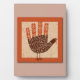 La ilustración clásica del pavo juguetón de Acción de Gracias de SlipperyJoe, idea de manualidad clásica, pulgar cabeza pico ojo completo dedos se convierten en sus plumas fuentes variadas tamaños atados gratitud agradecido familia amigos amor comida hogar reunión alegría salud fe artística cálida rústica sensación regalos del orgullo gay LGBTQIA fondo cuadrado texturizado naranja y beige