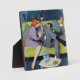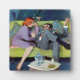 Artista: Lynn Buckham | Una mujer con un vestido morado y un hombre con traje sentado en un sofá verde.