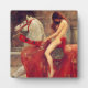 Placa John Collier Lady Godiva. Óleo sobre lienzo de 1897. La pintura más famosa del pintor pre-Raphaelite John Collier, Lady Godiva muestra a la legendaria noble anglosajona entrando a la ciudad a caballo en protesta por los altos impuestos de su esposo. El caballo que monta es blanco y alto y lleva una manta de caballo rojo y una brida. Un regalo de bonito para los aficionados a John Collier, The PreRaphaelites, Lady Godiva y los Cuadros de Historia.