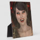 Representación digital en 3D de una bella dama de fantasía vamp sobre un fondo brillante rojo