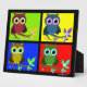 Este diseño contemporáneo cuenta con cuatro cuadrados de colores, cada uno con un búho sentado en una rama arbórea. ¡Una mirada divertida al búho! NOTA: Este diseño está protegido por derechos de autor y no puede copiarse ni redistribuirse. Para consultas acerca de este u otros diseños en esta tienda, o si necesita ayuda con la personalización, selección de color o pedidos especiales, utilice la función de envío de mensajes adjunta a esta tienda y estaremos encantados de asistirle