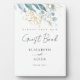 Libro de invitados de boda Blanco (Imitar) Azul Dorado elegante, frondoso, azul, caligrafía dorada Placa Señal. Esta pieza exquisita está diseñada para elevar la atmósfera de su día especial con su elegancia atemporal y características personalizables. Compre ahora y agregue un toque de refinamiento a su día especial.