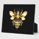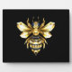 Oro, joyería, abeja poligonal con alas brillantes doradas sobre fondo negro. Animal de estilo poligonal. Abeja dorada.