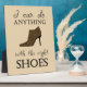 Este lindo diseño presenta un zapato de tacón alto y el texto "Puedo hacer cualquier cosa con los zapatos correctos". ¡El regalo perfecto para cualquier amante de los zapatos!