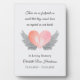Esta placa conmemorativa/conmemorativa es apropiada para una niña, niño o si se desconoce el sexo del bebé. Es un mantenimiento reflexivo luego del aborto espontáneo, el parto muerto, la pérdida neonatal o la pérdida súbita del bebé. El diseño incluye una acuarela con alas de ángel gris suave, un corazón rojo con huellas de bebé en el interior, y la cita "no hay huellas tan pequeñas".