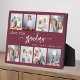 Give Grandma a gift she'll cherish. This photo collage plaque features eight of her favorite square photos of the grandkids, along with the message "Love You Grandma." The word "grandma" appears in elegant white handwriting script with flourishes at the beginning and end on a burgundy background. Add the names of up to four grandchildren. An ideal gift for holidays, birthdays or grandparents' day.
