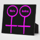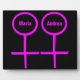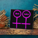 Esta impresionante placa está diseñada para lesbianas. Cuenta con dos símbolos femeninos rosados uno al lado del otro. El fondo es negro y hay un texto rosa personalizable dentro de cada uno de los símbolos para poner nombres.