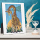 Mamá jirafa y bebé arte infantil creado por Imagine That! Diseño en electrónicos, accesorios y regalos es una escena caprichosa de una mamá y un bebé jirafa parados contra una puesta de sol y un cielo azul texturizado abrazados, con el cuello de la mamá curvado para que ella y su bebé se toquen las mejillas en una pose cariñosa. Los amantes de las jirafas de todas las edades amarán recibir esta pintura de la familia de jirafas como regalo.