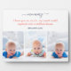 Placa de fotos adorable usando 3 de tus fotos favoritas. La plantilla está preparada para que personalizes la frase que actualmente dice "mamá te amo tanto que mi corazón podría explotar en un millón de besos [nombre del bebé] xoxo". La redacción está escrita en un guión elegante y con una impresión moderna en coral y azul profundo sobre un fondo blanco. Si desea editar el coloreado, haga clic en personalizar para introducir la herramienta de diseño o envíenos un mensaje para obtener ayuda. Por favor, navegue por nuestra tienda en busca de más regalos de fotos para bebés para una nueva madre.