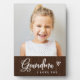 Esta simple y linda placa para tu abuela dice "Abuela, te amo" - pero puedes cambiar fácilmente el texto para decir "te amamos" si es necesario. Añade tu foto personal favorita. El fondo es un estilo de madera marrón y rústico con la tipografía moderna de escritura blanca y un corazón para un diseño elegante que a tu abuela le encantará.