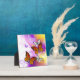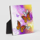 Naranja, mariposas monarcas detalladas sobre la luz, púrpura, pintoresco fondo pintado.