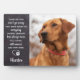 Celebra a tu mejor amigo con una placa conmemorativa de perro mascota personalizado en un rústico diseño de pizarra de pizarra. Esta placa fotográfica de perro única es el regalo perfecto para usted, familia o amigos para honrar a sus seres queridos. Esperamos que su mascota de fotos mascota conservará su memoria y le traiga alegría, paz y recuerdos felices. Cita " Los que amamos no se van, caminan a nuestro lado todos los días, no se nos ve, pero siempre cerca. Aún amado perdido, y muy querido. ". Vea 'personalizar esta plantilla' para cambiar la foto y el nombre . DERECHOS RESERVADOS © 2020 Judy Burrows, Black Dog Art - Todos los derechos reservados. Mascota Mascota memorial pérdida regalo simpatía perro placa de foto
