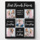 Celebra a tus mejores amigos con una placa de collage de fotos personalizados en un diseño moderno y elegante. Este único conservador de fotos de los mejores amigos es el regalo perfecto, ya sea un cumpleaños, o Navidades. Esperamos que su manta especial de mejores amigos se convierta en un tesoro para los años venideros. ... Cita "Los mejores amigos... Nuestras Risas Son Imitadas, Nuestros Recuerdos Innumerables, Nuestra Amistad Sin Fin. "Cuando tienes una abundancia de recuerdos preciosos y una foto no es suficiente, nuestra placa de collage de fotos tiene 5 preciosos puntos fotográficos. Personaliza tus fotos y nombres favoritos de tus amigos. Vea 'personalizar esta plantilla' para cambiar fotos, y nombre . Es mejor recortar tus fotos en cuadrados centrados antes de subir . DERECHOS RESERVADOS © 2020 Judy Burrows, Black Dog Art - Todos los derechos reservados. Los mejores amigos dan a su amigo Personalizado de poema 5 placa fotográfica