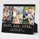 Moderna Y MEJOR PAPÁ DE HASTA 3 Fotos Personalizadas De La Plaque De Espalda. Cree una visualización personalizada de fotos en collage de fotos personalizados en esta placa de respaldo para un padre con 3 fotos, su título personalizado y/o mensaje en su elección de estilos de fuente y colores y color de fondo (mostrado en blanco sobre negro). El ejemplo se muestra con el título BEST. PAPÁ. NUNCA. Hace un regalo memorable de honor para papá por su cumpleaños, el Día del Padre o una fiesta. OPCIONES: La muestra se muestra en el tamaño 8x10; hay otros tamaños disponibles en el pedido. ASISTENCIA: Para obtener ayuda con la modificación o personalización del diseño, el cambio de color, el cambio de tamaño o la transferencia del diseño a otro producto, póngase en contacto con el diseñador ANTES DE ORDENAR a través de Zazzle Chat o makeitaboutyoustore@gmail.com.