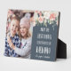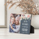 ¡Solamente las mejores madres son promovidas a Memaw! Comparte saludos dulces del Día de la Madre con esta hermosa placa fotográfica que muestra una atesorada foto de su nieto o nietos. Personaliza con sus nombres a la derecha, con letras blancas en un elegante fondo azul pizarra adornado con flores de color melocotón y rosa rubor y follaje verde.