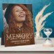 Placa de memorial rústico con una foto querida de su ser querido, un diseño de corazón de madera oscura, el dicho "en memoria amorosa", su nombre y fechas.