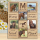 Celebre a su mejor amigo con un colaje de fotos personalizado de un caballo de compañía en un diseño de textura de madera natural. Esta placa conmemorativa única de un caballo es el regalo perfecto para usted, familiares o amigos para honrar a sus seres queridos.