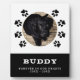Paquilla de la placa de Keepsake del Mascota de la foto del perro. Esta placa perdida de perro tiene una foto de un perro y un nombre con un patrón de huella de pata animal negra en un círculo alrededor de la foto. Un gran regalo de mantenimiento y en memoria de un dueño de perro.