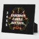 ¿Estás organizando una cena de reunión familiar o un picnic? Esta placa se verá muy bien en una mesa de bienvenida o en la cabecera de la línea del bufé, lo que da un toque de alegría a la reunión. Esta placa de mesa presenta un fondo negro y un texto blanco junto con un diseño artístico y caleidoscopio en colores naranja y amarillo. El nombre y el año de su familia acompañan este diseño. Todo el texto se puede personalizar fácilmente para crear un signo de bienvenida tan único como tu familia.