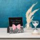 Decore su tienda boutique con esta moda y elegante placa con el nombre de la huella de cebra, con una suave cinta rosa ondulada atada a un lindo arco. Personalice este accesorio de oficina de la tienda de impresión en blanco y negro de moda añadiendo el nombre del vendedor y la empresa. Imagen plana impresa, no cinta real.