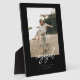 Modern Minimalistic Black Script "Engaged" Photo Plaque. Personalize with your names, engagement date, and a favorite engagement photo. Makes a perfect minimalistic and elegant keepsake for couples.
