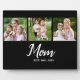 Photo plaque featuring your 3 favorite photos and the text “Mom Est.” with a custom year to celebrate when she became a mom. Add additional years for each child to make it uniquely hers. A sweet keepsake for Mother’s Day, birthdays, or everyday love.