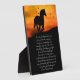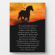 Un caballo libre que corre al atardecer con los pájaros, esta placa conmemorativa trata de la conexión del amor que trasciende la muerte. El poema dice: Como decimos adiós, por favor no sientan pena, por el tiempo en esta tierra, solamente nos prestamos. Tuve suerte de que yo, mi corazón tuviera un hogar, y con ustedes a mi lado, no me sentí solo. Llantas mi vida de felicidad y luz, mi alma seguirá siendo eternamente brillante. El amor no puede terminar, no puede desaparecer, siempre estaré contigo, siempre estaré cerca. Y ahora que mi viaje ha llegado a su fin, por favor, conozca y se reconforte con este amigo. Para mí, por mi vida, por favor no lloren, por ahora permanezco libre para siempre.