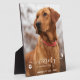 Celebra a tu mejor amigo con una placa conmemorativa de un mascota personalizado. Esta placa conmemorativa de la foto de un perro es el regalo perfecto para usted, la familia o los amigos para honrar a sus seres queridos. Nuestra moderna placa de pérdida de mascotas incluye una foto completa, Cita: "En la memoria amorosa, de un perro maravilloso", en un elegante guión e impresiones de pata. Personalizar con tu foto, nombre y fechas mascotas favoritos. DERECHOS RESERVADOS © 2020 Judy Burrows, Black Dog Art - Todos los derechos reservados. Placa conmemorativa Mascota personalizada en memoria moderna