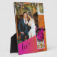 Placa fotográfica con fotos de personalizados en un diseño rosa y naranja fucsia con texto de amor de escritura. Un boho hippie que llama la atención por un compromiso, boda o aniversario. Personalizable para otras situaciones.