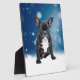 Cute Bulldog francés Nieve Estrellas Navidades azules.