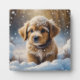 Un lindo cachorro vacacional jugando en la nieve en un día de invierno los Navidades se toman una foto.