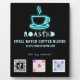 Manténgase conectado con los clientes del café/café usando este cartel de mesa que incluye una taza de café azul neón con texto de personalizable y códigos qr de medios sociales sobre fondo negro