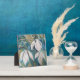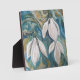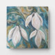 Los mensajeros de primavera, tres flores de nieve sobre un fondo de jardín azul esmeralda, con tonos helados metálicos.