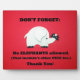 Elefante con cinta amarrada alrededor de su baúl, y forma humorística de transmitir tu mensaje: "No olvides: no se permite ningún ELEFANTE. (¡Eso incluye a otros mascotas también!.) ¡GRACIAS!" ¡Ideal para cualquier oficina o lugar de negocios de médicos que no permita mascotas!