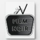 Diseño vectorial digital personalizado divertido de un televisor vintage con el logo 'film noir'.