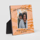 Notas musicales elegantes de melocotón Placa de foto de parejas con TEXTO PERSONALIZABLE, diseñada con notas musicales y el tema 'Haciendo dulce música juntos'. Agrega tus nombres y detalles de fecha y sube tu foto vertical. Esta placa de parejas sería un regalo encantador de boda o aniversario para esa pareja especial, o un hermoso regalo del Día de San Valentín para un ser querido. Otros colores disponibles o puede editar el diseño a su color(es) deseado.
