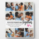 Crea tu propia placa especial de collage de fotos del día del padre. Con 9 imágenes cuadradas de estilo insta con el texto 'Nuestro primer día del padre juntos', la palabra juntos está en escritura moderna, dos pequeños corazones lindos rosados que pueden cambiarse a cualquier color, un dulce mensaje que puedes tener o cambiar y el nombre/s. Todo el texto se puede personalizar en tamaño, tipo de letra y color.