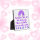 Monogramado para que insertes tu propia oración si así lo eliges, placa. Este adorable tema del boho con un arco iris púrpura y rosado con nubes, y un texto púrpura sobre un fondo blanco, dice, Gracias, Dios, por este encantador día. Bendita sea mi familia, mantennos a salvo, rezo.