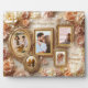 Ornate Floral Frames with Soft Gold Botanical Layers opens with a richly layered composition of antique-inspired frames, blooming roses, and luminous botanical accents arranged in a balanced, gallery-style layout. The visual story centers on five ornate frames—oval and rectangular—finished in warm gold tones and surrounded by cascading florals in blush, champagne, ivory, and muted peach. Soft shadowing and gentle highlights create depth and movement, while delicate leaves and petals weave throughout the background, forming a cohesive and elegant collage. This photo template piece on Zazzle is thoughtfully composed to showcase five customizable photos and a personalized message, allowing personal imagery to become part of the decorative narrative without disrupting the overall harmony. Secondary keywords such as vintage floral collage and heirloom frame aesthetic are reflected in the classical frame silhouettes, romantic color palette, and softly antiqued textures. The style blends old-world charm with a clean, contemporary presentation, making it suitable for a wide range of special occasions—from family milestones to meaningful celebrations. Light-filled botanical layers soften the composition, while the symmetrical arrangement guides the eye naturally across each framed moment. The glossy acrylic finish enhances color depth and clarity, giving the florals and frames a refined, luminous presence on the wall. Ornate Floral Frames with Soft Gold Botanical Layers concludes as a timeless visual keepsake, where personal memories are elegantly framed within a graceful floral setting.