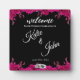 Placa Expositora Orquídeas de Fuchsia en Rótulo de mesa de Boda neg