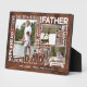 Celebra tu especial y maravilloso padre en tu vida con nuestras memorables y únicas palabras para papá, la placa falsa de grano de madera del día del padre. El diseño presenta un collage de diferentes palabras para papá combinado con un diseño de tres fotos para mostrar tus propias fotos familiares especiales. Fondo de madera falso con las palabras mostradas en el divertido diseño tipográfico. Personaliza el cartel con el nombre de tu padre y agrega tus nombres al frente. El regalo perfecto para el día del padre, el cumpleaños, etc.