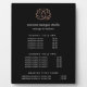 Elegante placa con caballete muestra su spa, servicio de masajes o servicios relacionados con el bienestar o carta de precios con letras blancas clásicas sobre un rico fondo negro adornado con un falso ilustracion de flores de Relieve metalizado de oro. Incluye tres encabezados de personalizable y campos de texto de cuerpo. Para ajustar el diseño, introduzca el texto y, a continuación, utilice la función Personalizar para cambiar el posicionamiento y el tamaño de las fuentes.